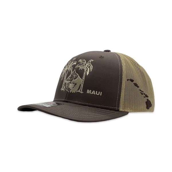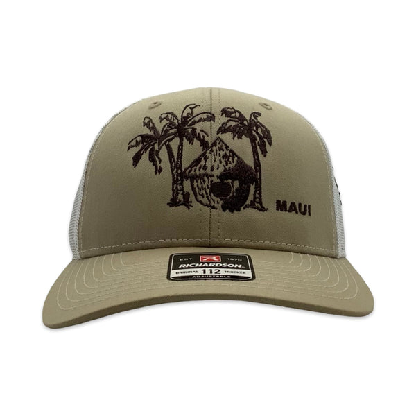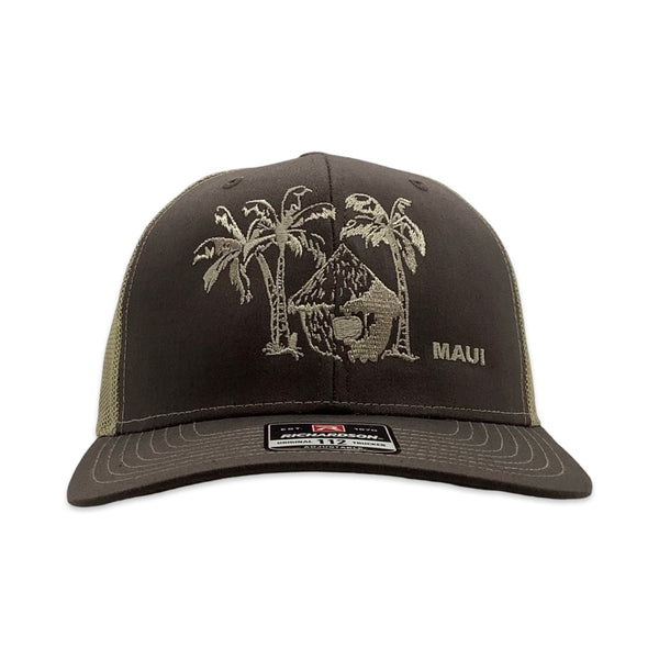 Rock a piece of 808 Clothing Co history with our Limited-Edition Tiki Hut Trucker Hat. This classic design showcases intricate embroidery of an iconic tiki hut on the front, while the Hawaiian Islands grace the side panel. Perfect for collectors and anyone who wants to rep authentic Hawaiian style. Grab yours before it's gone for good. Adjustable snapback closure, on this 112 Richardson hat creates a customizable fit. This exclusive style won't last long—claim yours now before it disappears from our collection.