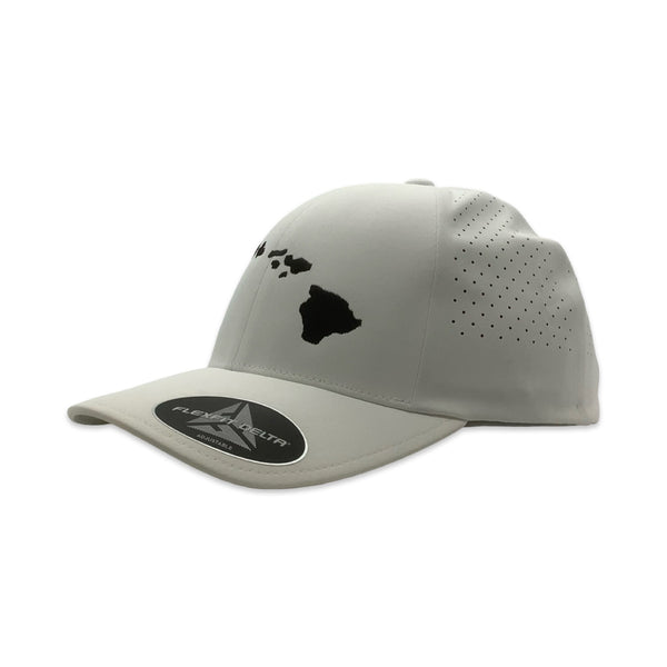 The Hawaiian Islands are delicately embroidered on the front panel of this Flexfit Delta Performance Hat. Flexfit Delta blends sleek style with advanced comfort features. Its snapback closure ensures a customizable fit, while laser-cut perforations on the sides and back enhance breathability for all-day coolness. Equipped with patented Stain-Block technology and a three-layer sweatband, this hat keeps sweat and stains at bay, maintaining a fresh look no matter the activity. Discover dependable performance and effortless style in one versatile cap.