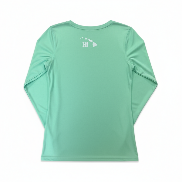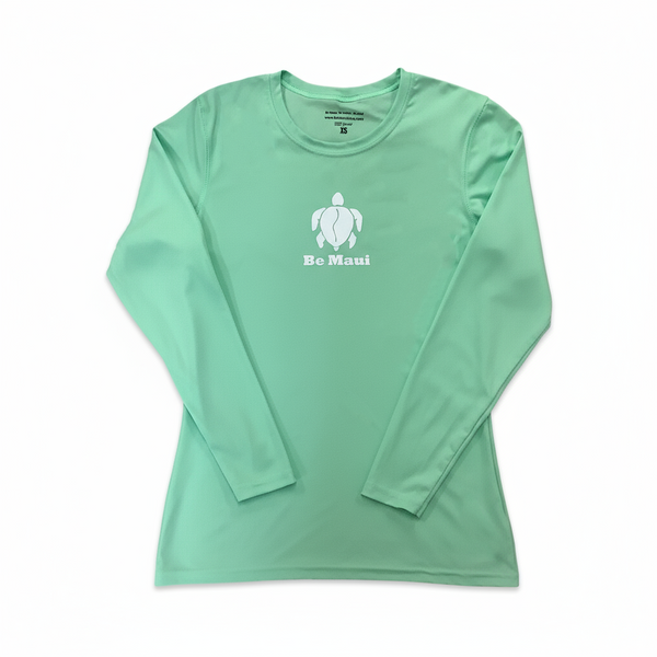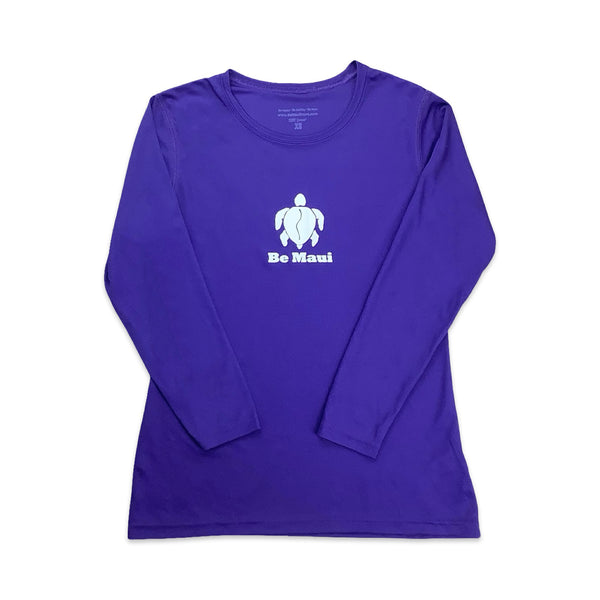 This "Be Maui" Honu Performance Long Sleeve UV Shirt features a Small "Be Maui Honu" on the front center and the Hawaiian Islands on the back. The shirt is made from Syntrel, which combines unique microfiber packets with advanced knitting technology to channel moister from the body and allow free flow of air for high performance activities. Superior moisture wicking, extreme dry rate and UPF 30 protection against harmful UV rays.