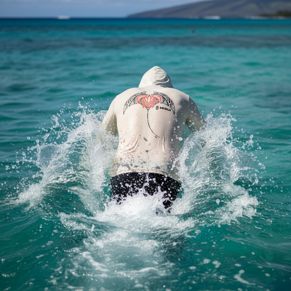 New Release! Discover our latest Honu Manta Sublimated Performance Long Sleeve UV Shirt with Hoodie. Featuring a small Honu Manta design on the front left side and a larger design on the back, this shirt is perfect for all your outdoor adventures. The fabric is created using the sublimation process, which ensures that the vibrant colors are deeply embedded into the fabric resulting in a design that is highly durable, resistant to fading, and retains its brightness even after multiple washes. Additionally, the hooded shirt offers excellent moisture-wicking properties and UPF 50 protection against harmful UV rays. This shirt is both functional and fashionable.