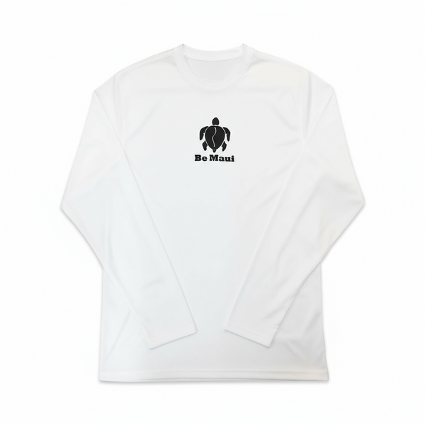 This "Be Maui" Honu Men's Performance Long Sleeve UV Shirt features a small "Be Maui Honu" on the front center and the Hawaiian Islands on the back. The shirt is made from Syntrel, which combines unique microfiber packets with advanced knitting technology to channel moister from the body and allow free flow of air for high performance activities. Superior moisture wicking, extreme dry rate and UPF 30 protection against harmful UV rays.