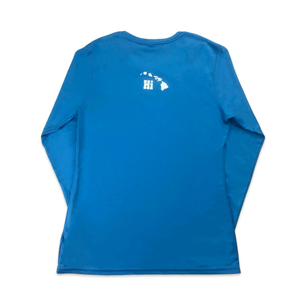 This "Be Maui" Honu Performance Long Sleeve UV Shirt. features a Small "Be Maui Honu" on the front center and the Hawaiian Islands on the back. The shirt is made from Syntrel, which combines unique microfiber packets with advanced knitting technology to channel moister from the body and allow free flow of air for high performance activities. Superior moisture wicking, extreme dry rate and UPF 30 protection against harmful UV rays.