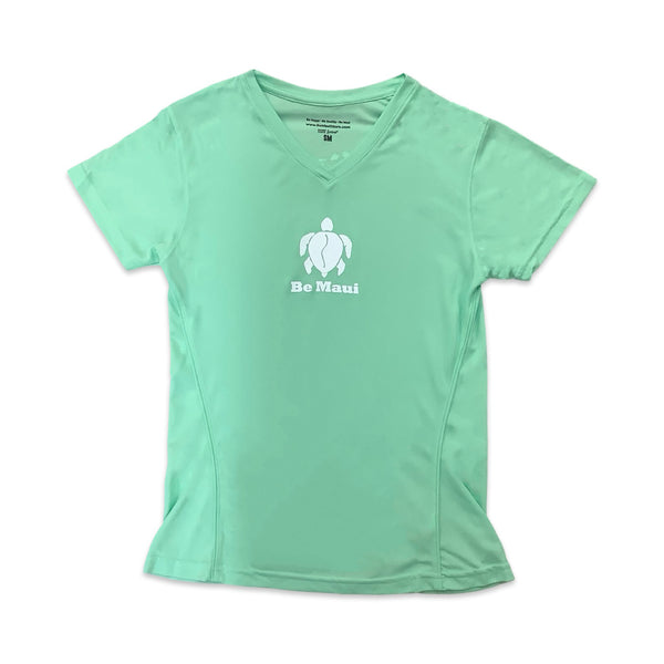 This V-Neck "Be Maui" Honu Performance UV Shirt features a small "Be Maui Honu" on the front center and the Hawaiian Islands on the back. The shirt is made from Syntrel, which combines unique microfiber packets with advanced knitting technology to channel moister from the body and allow free flow of air for high performance activities. Superior moisture wicking, extreme dry rate and UPF 30 protection against harmful UV rays.