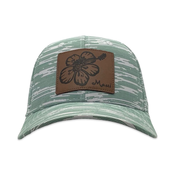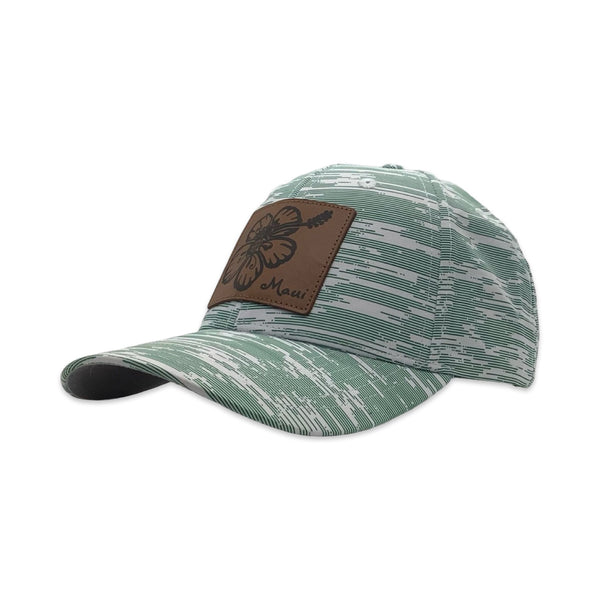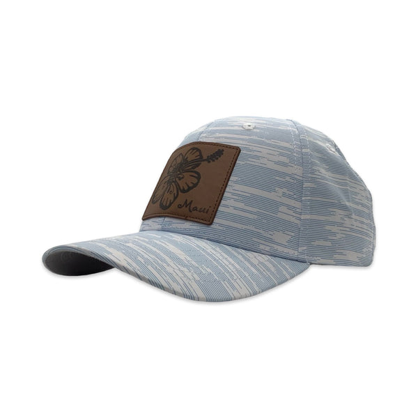 Introducing our new Hibiscus Pineapple Golf Hat, a perfect blend of style, performance, and Hawaiian flair. This structured mid-profile hat is crafted from White Pearl Nylon Performance fabric, featuring an all-over linear sublimation design with vibrant hibiscus patterns and UPF 50+ sun protection to keep you comfortable and protected on the course. The front boasts a stylish leather patch featuring a pineapple inside a hibiscus flower, along with the word "Maui," adding a sophisticated touch. The moisture-wicking sweatband ensures you stay dry, while the grey Pearl Nylon under visor reduces glare for better visibility. Adding a touch of island spirit, the back panel is adorned with the iconic 808 logo and Hawaiian Islands embroidery. The high-tech Velcro hook and loop closure offers a secure, adjustable fit. Shipped directly from Maui, Hawaii, this hat brings an authentic touch of paradise to your golf gear.